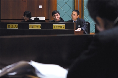 昨日,起诉侵权的脑瘫拳击手汪强坐在原告席上,倾听坐在旁边的律师发言。本版摄影/实习生 陈婉婷