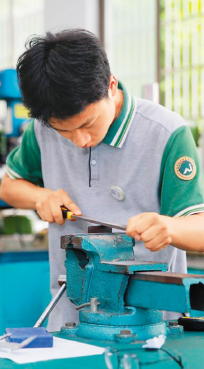 浙江省东阳职业教育中心学校举行技能比武。图为学生在参加钳工项目竞技中。(资料图)
