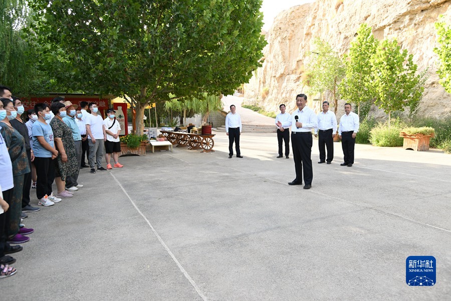 14日下午,40摄氏度高温下,习近平总书记沿着中央大道,进门阙,入城池。城垛、街巷、庙宇、市井、官署、作坊、民居,残垣断壁,耸立于蓝天黄土之间,历史的沧桑扑面而来。