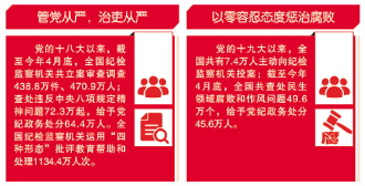 以零容忍态度惩治腐败。我们党始终坚持严的主基调不动摇,坚决遏制增量、削减存量,腐败蔓延势头得到有力遏制,反腐败斗争取得压倒性胜利并全面巩固,进入到发现一起、查处一起的常态化阶段。党的十九大以来,全国共有7.4万人主动向纪检监察机关投案。截至今年4月底,全国共查处民生领域腐败和作风问题49.6万个,给予党纪政务处分45.6万人。