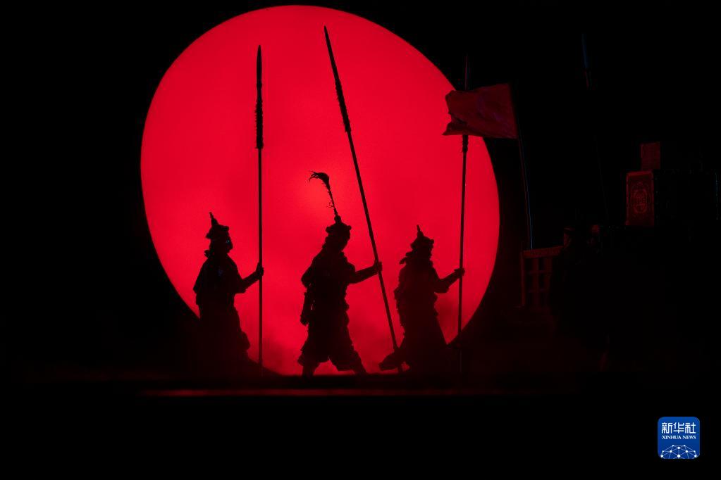演员在大型实景剧《文成公主》中表演(2021年4月10日摄)。新华社记者 孙瑞博 摄