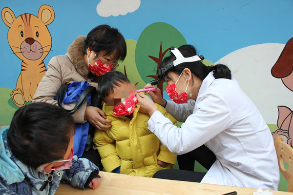河南省安阳市残联组织公立医院医生和志愿者,到当地聋儿语训中心开展“全国爱耳日”义诊活动。