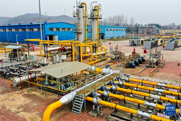 这是2020年12月8日拍摄的位于山西省晋城市沁水县的山西蓝焰煤层气集团有限责任公司李庄首站(无人机照片)。新华社记者 曹阳 摄
