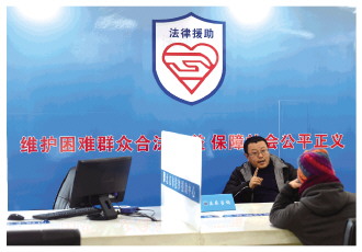 2018年2月11日,江苏省南京市栖霞区司法局公共法律服务中心内,工作人员正在接待几名因遭遇欠薪前来寻求法律帮助的农民工。据悉,我国现已建成省、市、县、乡、村五级公共法律服务中心(工作站、工作室)约57万个,每年提供法律咨询、法律援助、调解等各类服务1800多万件次。 本报记者 王建军 摄