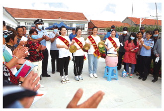 2022年以来,辽宁省东港市委政法委积极构建“基层网格+村、镇、县社会治理综合服务中心”四层级管理工作体系,全力将矛盾纠纷化解在基层。为群众开展形式多样的法治宣传及法律服务的“舒心小院”就是一个平安新亮点。图为9月13日,北井子镇新海村群众在小院里观看“平安三句半”的表演。 本报通讯员 蔡冰 摄