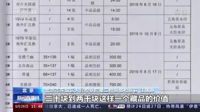 北京市东城区人民检察院第二检察部检察官汪珮琳:我们在找相关的权威的鉴定机构去鉴定这些藏品的时候发现他的价值也就是20块到两千块这样一个藏品的价值。