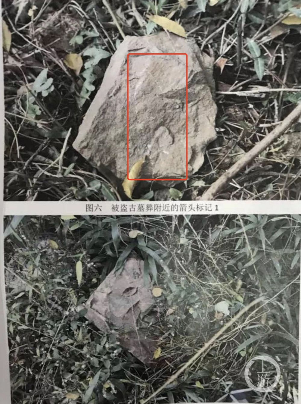 2018年6月,苏州警方在横山山顶发现被盗古墓附近的石头上有箭头标记。 苏州警方 图