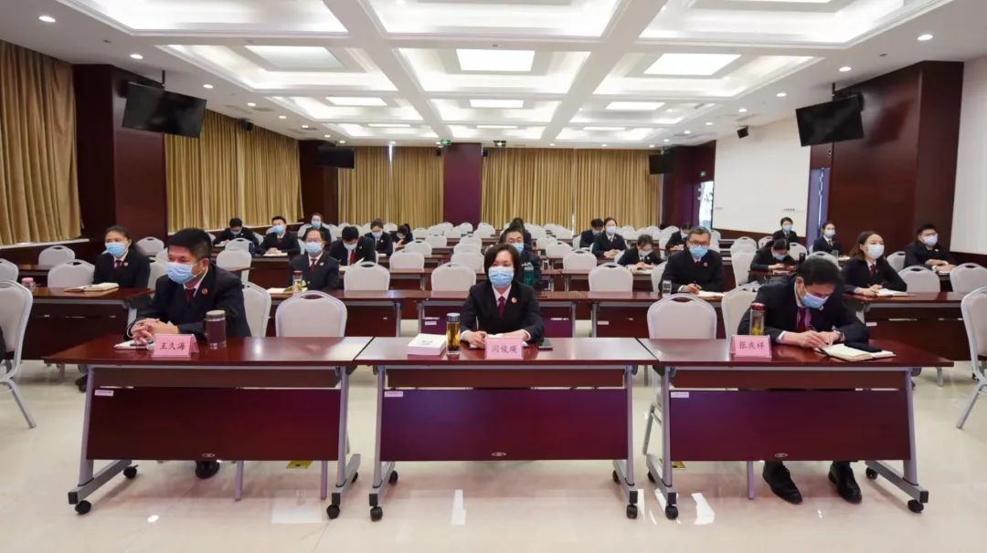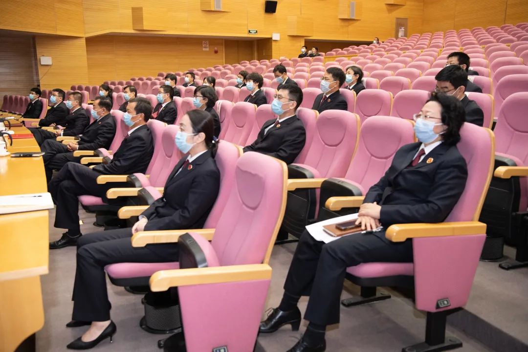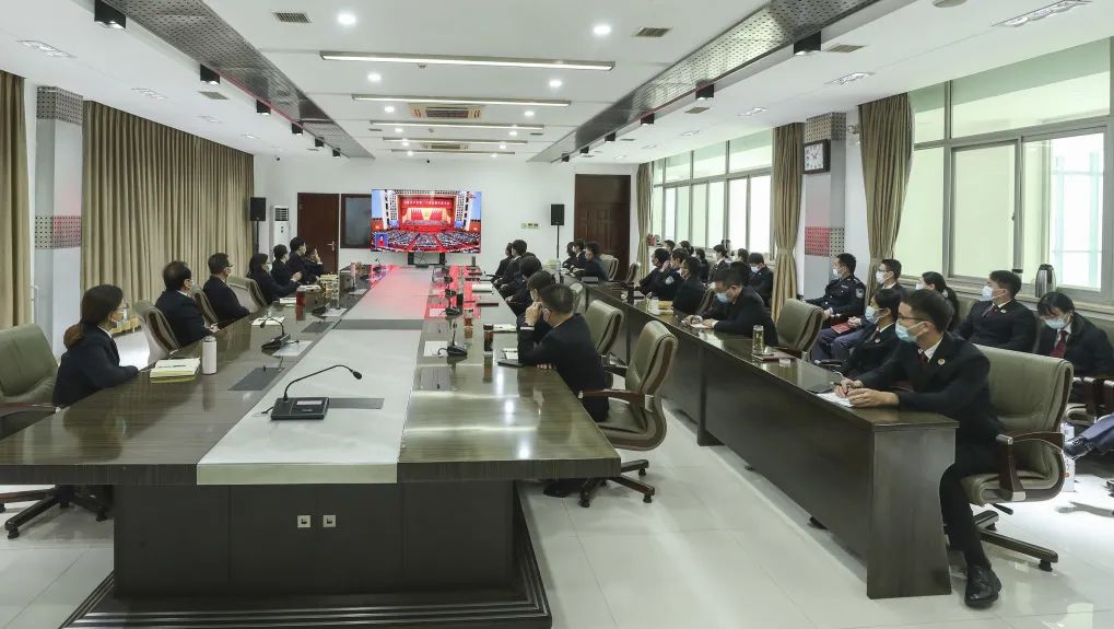 图为市检察院领导班子成员、二级巡视员、二级高级检察官和各内设机构负责人在市检察院机关收听收看党的二十大开幕会,收听收看活动严格落实各项疫情防控要求。