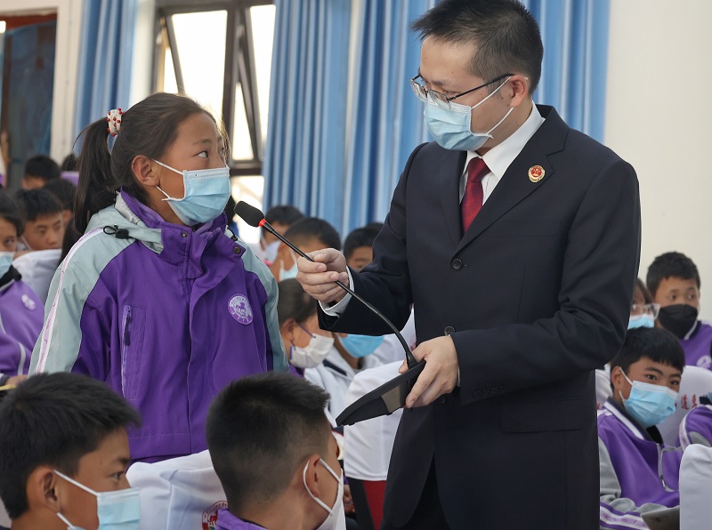 日前,四川省成都市新都区检察院未检检察官到对口援助的甘孜藏族自治州道孚县中学,开展“检爱同行——法治进乡村”全国巡讲活动。记者查洪南 通讯员何蕾摄