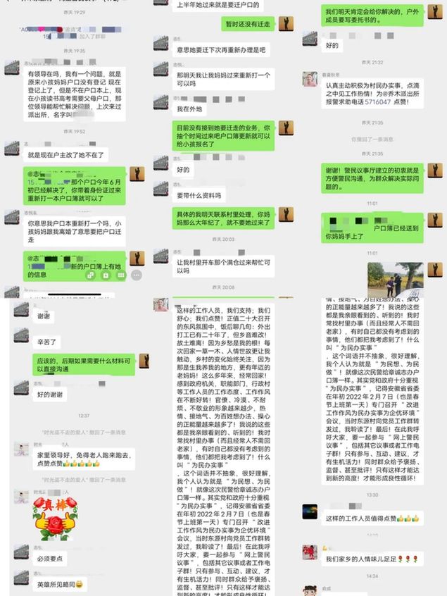 张先生表示,自己在外地务工,第二天让自己的母亲到派出所办理。考虑到张先生母亲年纪较大,路途遥远,10月17日上午,民警驱车将重新打印的户口簿送到其家中,并通过“网上警民议事厅”微信群将结果告知张先生。