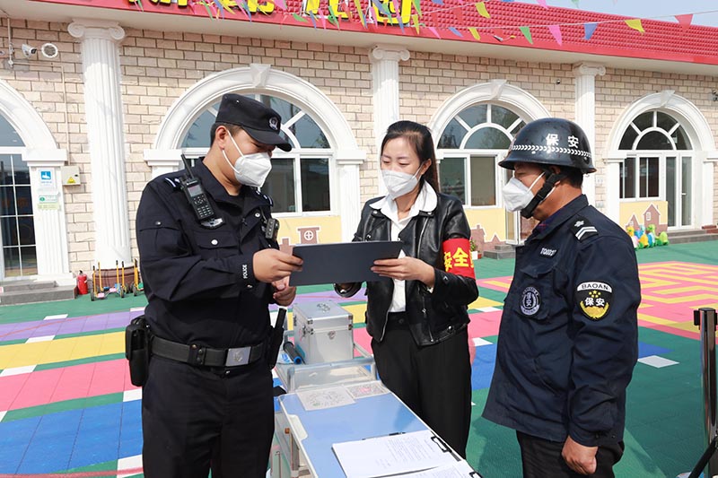 图为曹泳海到辖区幼儿园排查安全隐患。