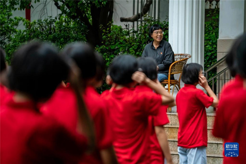 云南丽江华坪女子高级中学校长张桂梅观看新生学习课间操(2021年8月24日摄)。新华社记者 江文耀 摄