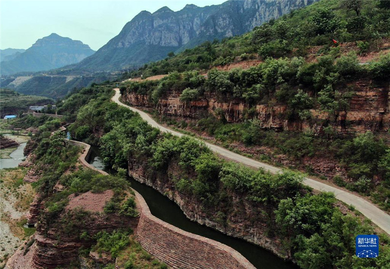 这是蜿蜒穿行于太行山间的红旗渠总干渠(2019年7月4日摄,无人机照片)。新华社记者 李安 摄
