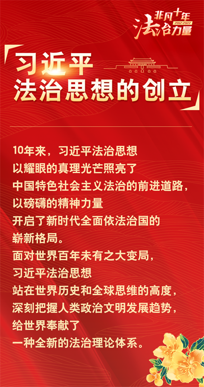 法治网精心策划制作十期海报,带您一起领略非凡十年的法治力量!今天为您奉上第一期“习近平法治思想的创立”。