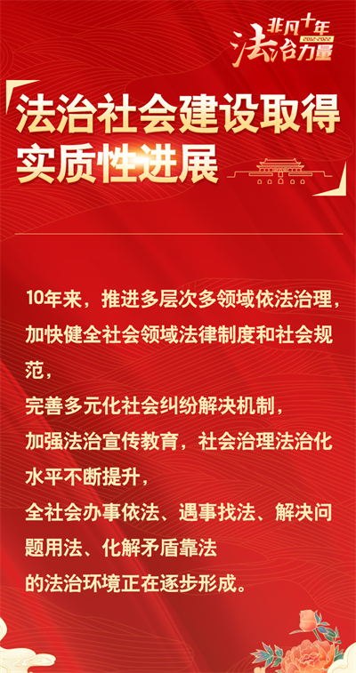 法治网精心策划制作十期海报,带您一起领略非凡十年的法治力量!今天为您奉上第七期“法治社会建设取得实质性进展”。