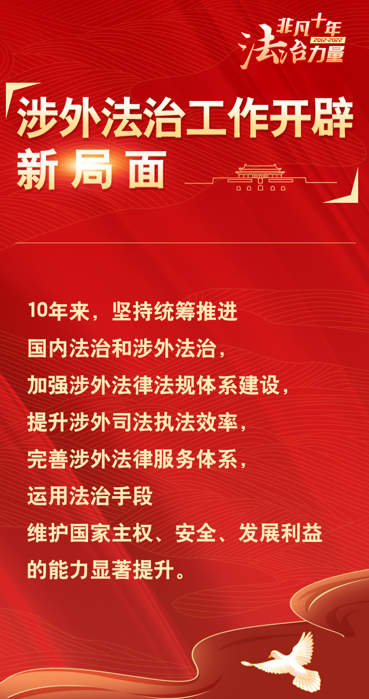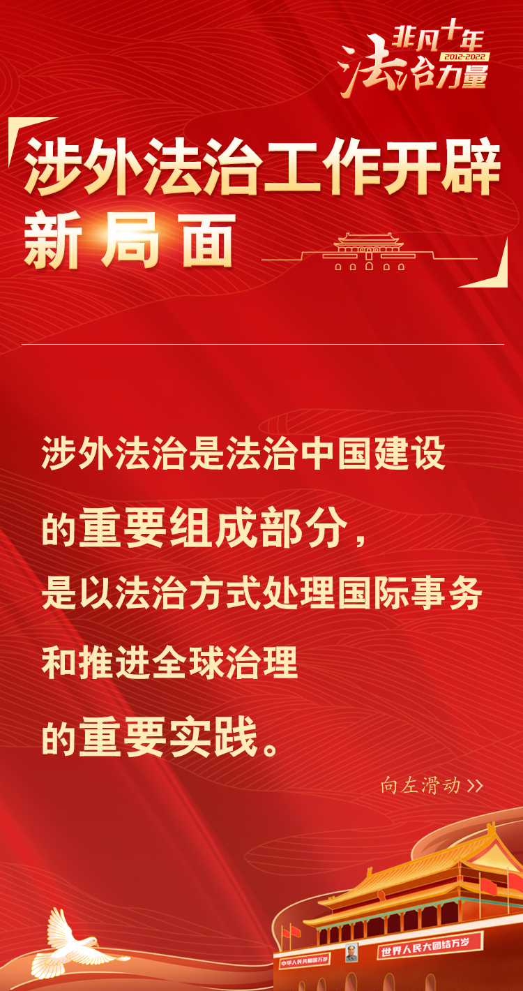 法治网精心策划制作十期海报,带您一起领略非凡十年的法治力量!今天为您奉上第八期“涉外法治工作开辟新局面”,向左滑动图片,一起来看精彩内容。