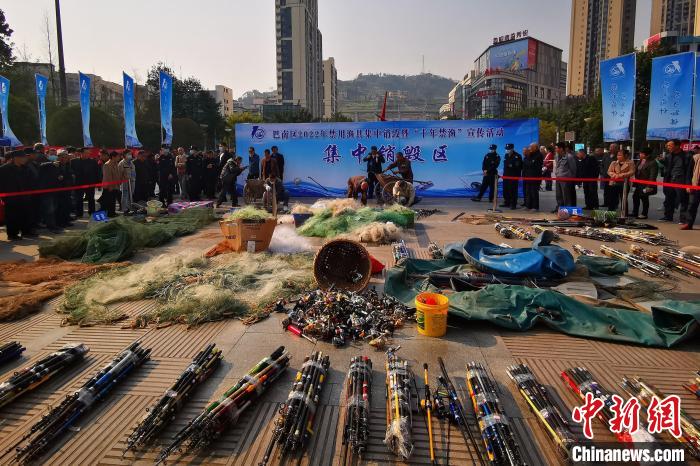 资料图为重庆警方开展非法捕捞渔具集中销毁活动。 重庆市公安局供图