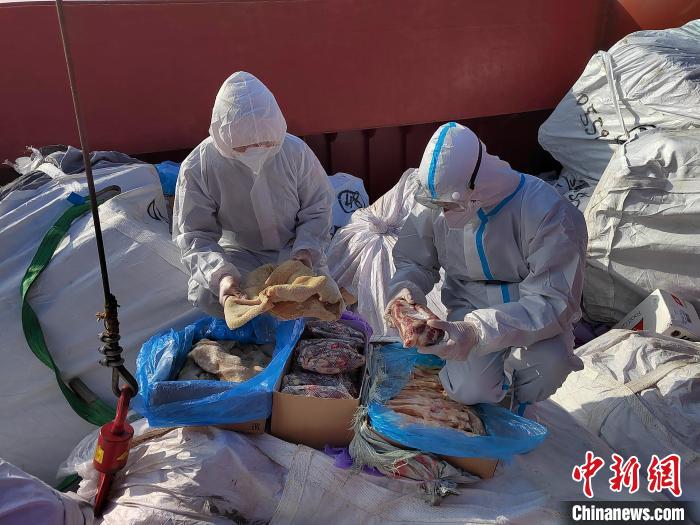 海警执法员对涉案冻品进行点验。 福州海警局供图