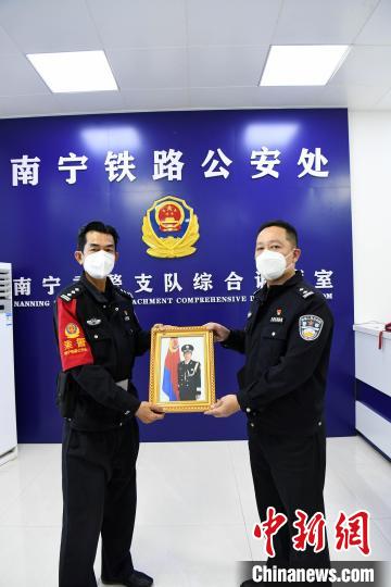 南宁铁路公安局南宁公安处在车站为覃业民进行了简单的庆祝仪式,退乘后支队领导向他赠送了象征着“一身警服、一生荣耀”的警礼服照片,并为他多年默默坚守和无私奉献表示衷心的感谢。(完)
