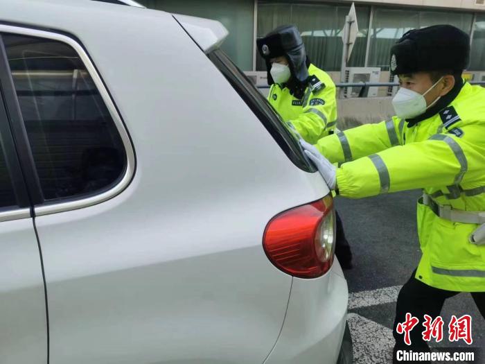 1月14日,民警帮助司机清理故障车辆 王海蛟 摄