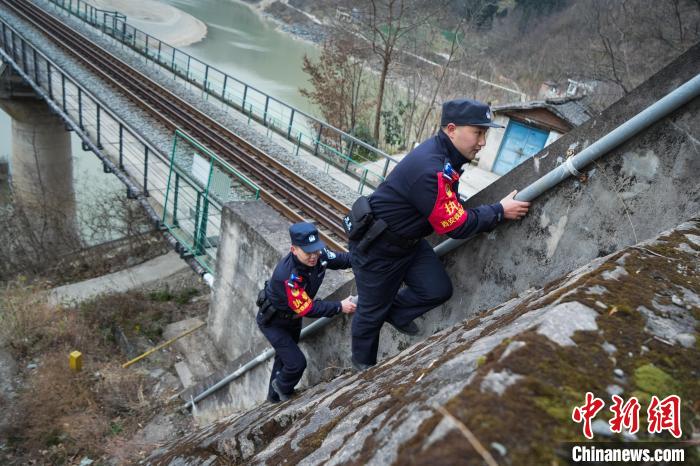 送走了“小慢车”,王寅虎又马不停蹄地带着徒弟李灿伟前往辖区重点线路区段巡查。驱车沿着崎岖山路行驶了20公里后,两人又徒步3公里来到嘉陵江铁路2号桥。临桥的急道沟村顺着线路一字排开,春节期间,村里回来了返乡村民,为图方便跨越铁路到燕子砭镇赶大集、走亲戚,有的还三五成群在桥上行走。王寅虎入村到户,与65名返乡人员逐一签了“线路安全责任书”,对他们进行了法制宣传教育,大家频频点头表示配合。