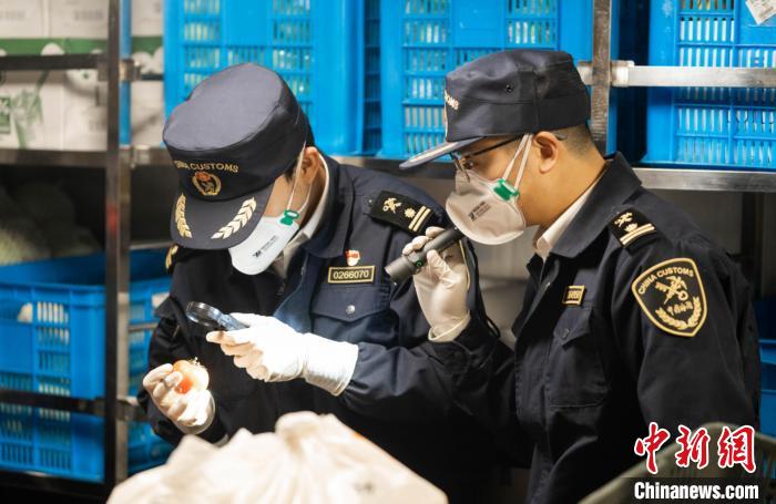 中新网天津2月1日电 (记者王君妍)记者1日从天津海关获悉,日前,天津海关所属南疆海关关员在对一艘入境船舶实施登临检查时,在伙食库内的苹果中截获10余只疑似果蝇类有害生物,后经鉴定为斑翅果蝇。随后,关员已按相关规定督促船方对该批苹果进行无害化处理。