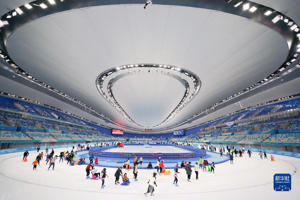 2023年1月30日,市民游客在国家速滑馆内滑冰,感受冰雪乐趣。新华社记者 鞠焕宗 摄