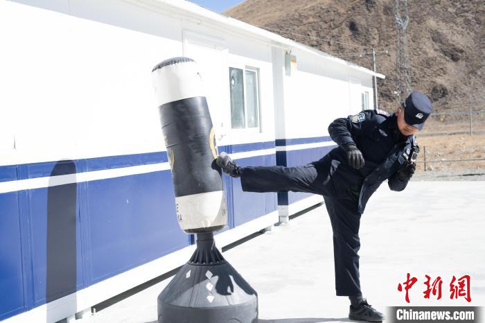 图为罗布日常锻炼打拳,他背后是去年12月新建的板房。 贡嘎来松摄