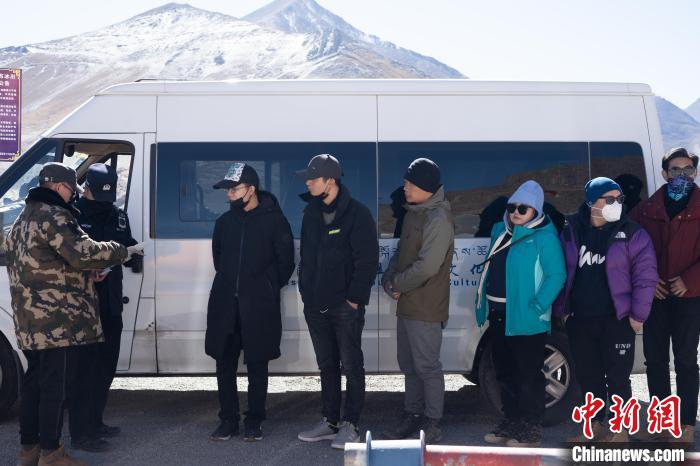 图为游客排队接受检查证件。 贡嘎来松 摄