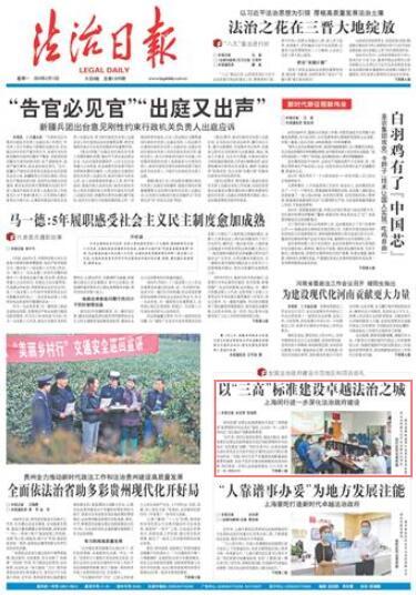 “近年来,闵行区高站位谋划、高起点推动、高标准落实全国法治政府建设示范区和虹桥国际中央法务区‘双区驱动’战略。”闵行区委书记、区委全面依法治区委员会主任陈宇剑近日接受《法治日报》记者采访时说,“当前,闵行正处于多重国家战略叠加的重要机遇期,也处于经济发展动能转换的决战决胜期,我们将进一步深化法治政府建设、久久为功,争创一流、勇做标杆,打造更加优越的法治化营商环境,建设具有国际影响力的未来之城、卓越之城、法治之城。”