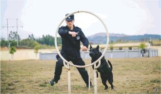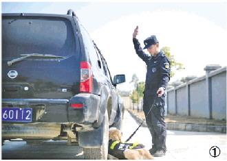 图① 苏亚伟带领警犬执行任务。