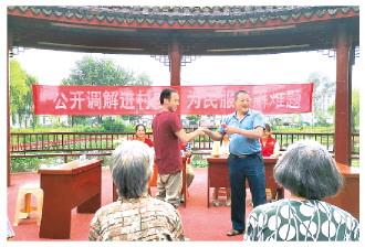 图为宿迁市泗洪县上塘镇垫湖村开展“公开调解”活动,现场化解借贷纠纷。 宿迁市司法局供图