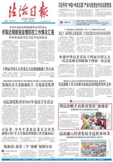 近年来,蚌埠市把建设法治蚌埠摆在突出位置,积极探索,大胆创新,通过一砖一瓦绵绵用力、一针一线久久为功,筑法治之基、行法治之力、积法治之势,连续3年在全省法治政府建设考核中位列第一,获评第二批全国法治政府建设示范市,为推动经济社会高质量发展注入强大动力。
