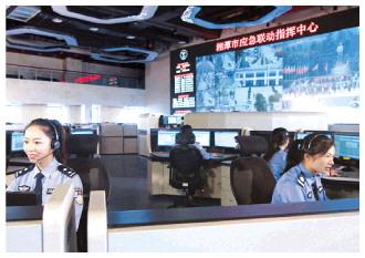 图为湘潭市应急联动指挥中心发挥“前哨站”“指挥室”作用,处理紧急求助警情。 本报通讯员 周思 摄