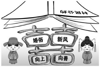 四川省成都市武侯区在社区内建设了多民族婚俗微型博物馆,以多民族婚俗文化为主题,展示弘扬中华优秀传统婚俗文化,建构社群文化认同。吉林省永吉县打造金家乡伊勒门村“满族婚俗文化试点村”,建设民族文化博物馆,开展传统满族婚俗文化展,聘请民俗传承人制作满族婚俗剪纸画,邀请文史专家撰写《满族婚俗文化》指导手册,以特色婚俗文化助力当地婚俗改革,宣扬文明婚俗新风。新疆维吾尔自治区乌鲁木齐市头屯河区将“乌鲁木齐第一榆”文化广场建设为新时代文明婚俗示范广场,以“梦·家·路”为主题展示具有少数民族风情的婚俗代表物品,吸引广大青年、新人祈福许愿。