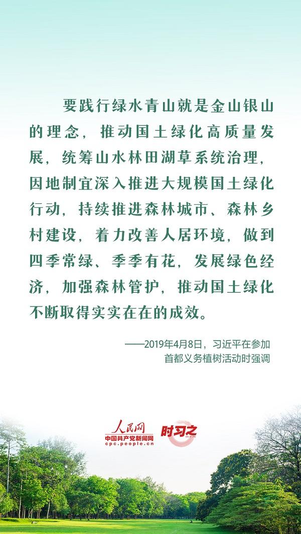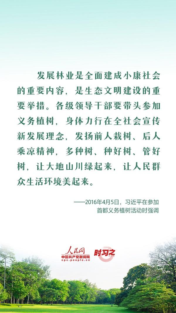 春风吐绿、草木初萌,又是一年植树节。党的十八大以来,习近平总书记每年都会参加义务植树活动,身体力行倡导人人爱绿植绿护绿的文明风尚,率先垂范激发人民群众植树造林、绿化祖国的责任意识,引领全社会形成行动自觉,共同建设人与自然和谐共生的美丽家园。