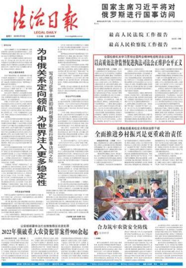 本报北京3月17日讯记者张昊3月17日,全国检察机关召开电视电话会议,传达学习贯彻习近平总书记在全国两会上的重要讲话精神和全国两会精神。最高人民检察院党组书记、检察长应勇强调,各级检察机关和全体检察人员要坚持以习近平新时代中国特色社会主义思想为指导,以学习贯彻党的二十大精神为统领,深入落实全国两会精神,始终坚持党对检察工作的绝对领导,始终坚持运用法治力量服务高质量发展,始终坚持人民至上、检察为民,始终坚持高质效履行法律监督,始终坚持全面从严治检,切实把学习贯彻成果转化为检察履职实效,转化为以检察工作现代化服务中国式现代化的不竭动力。