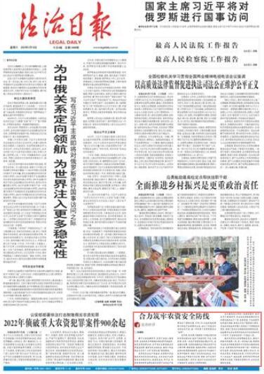 维护农资安全是保障粮食安全、推动乡村振兴的重要一环,是一项系统工程,既需要司法机关对制假售假等行为坚持全链条快速打击,也需要政府和相关部门进一步强化各环节监管,深化协作机制,凝聚工作合力,压实各方责任,加强法治宣传,引导有关单位和个人合法生产、诚信经营,共同守好守牢农资质量安全底线,不断提升质量水平,让农业更强农民更富。