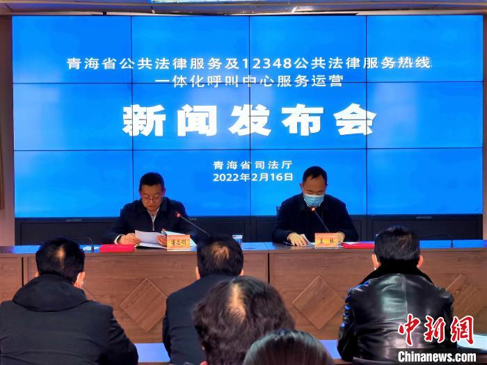 图为青海省公共法律服务及12348公共法律服务热线一体化呼叫中心服务运营新闻发布会现场。 青海省司法厅供图