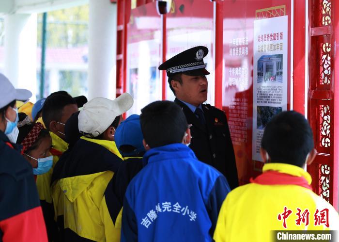 27日下午,60多名学生在老师带领下走进吉隆边检站警营,师生在移民管理警察引导下参观警营文化长廊、警史馆和阅览室,观摩警棍、盾牌、枪支等警用装备,观看西藏发展变化教育片,聆听新旧西藏对比相关故事。
