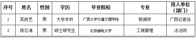 经公开招聘,拟录用以下2人为报社聘用人员,现将拟录用人员信息公示如下: