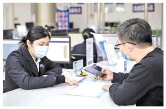 2021年2月19日,在哈尔滨新区政务服务大厅,工作人员指导申请人按照“以照为主,承诺代证”方式,通过手机办理相关申报。