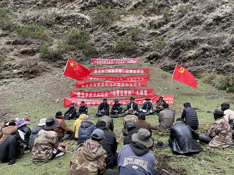 图为甘孜州新龙县麻日乡开展虫草采挖期普法宣传活动。 德吉央宗 摄