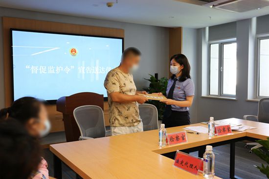 检察官对失职家长送达督促监护令。湖北省人民检察院第九检察部供图
