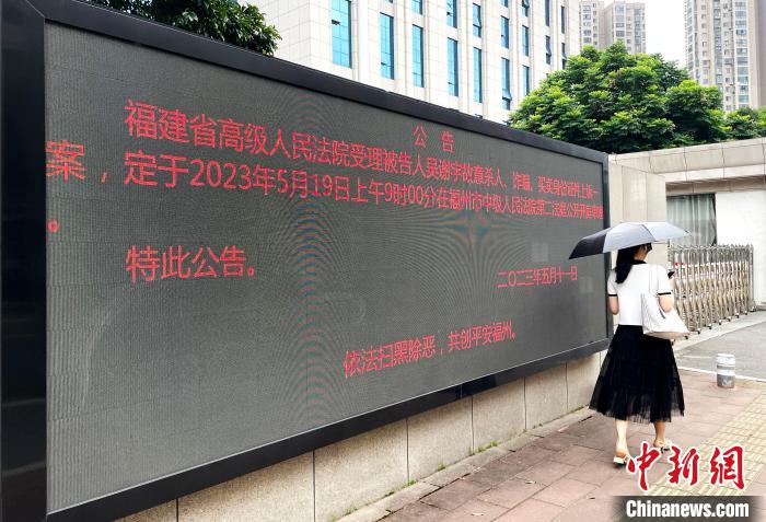 图为5月19日,市民从福州市中级人民法院电子公告牌旁经过。 张斌 摄