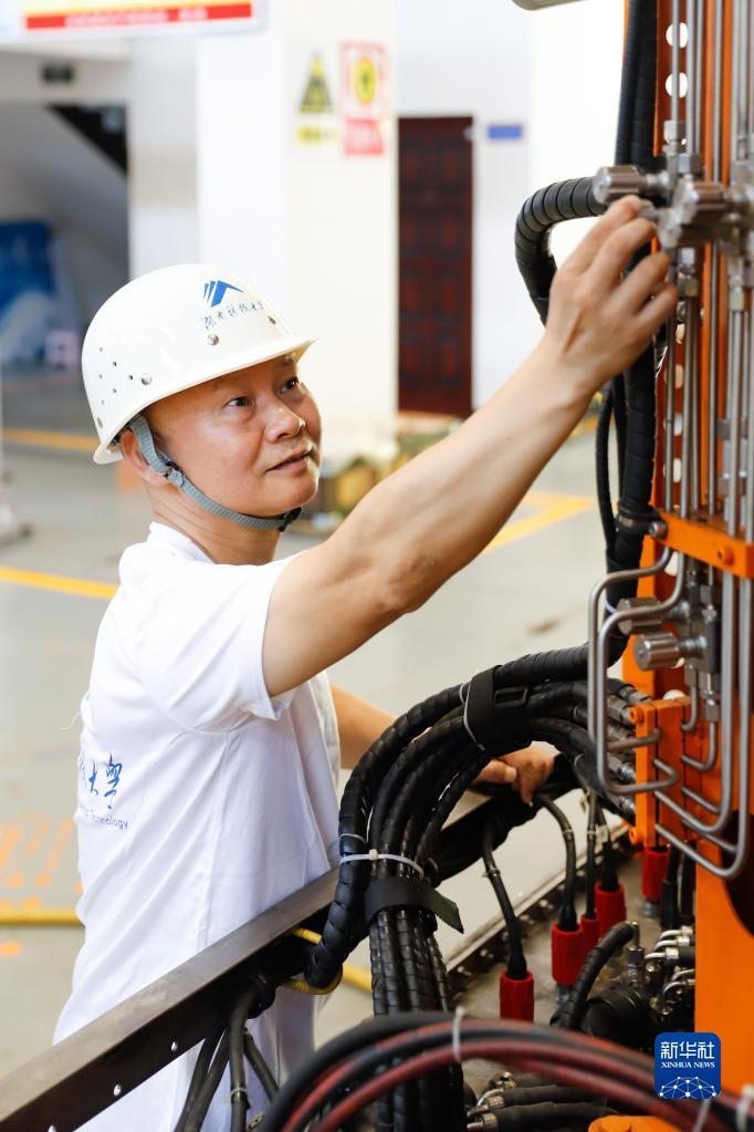 万步炎在湖南科技大学海洋实验室工作(2022年7月25日摄)。新华社发