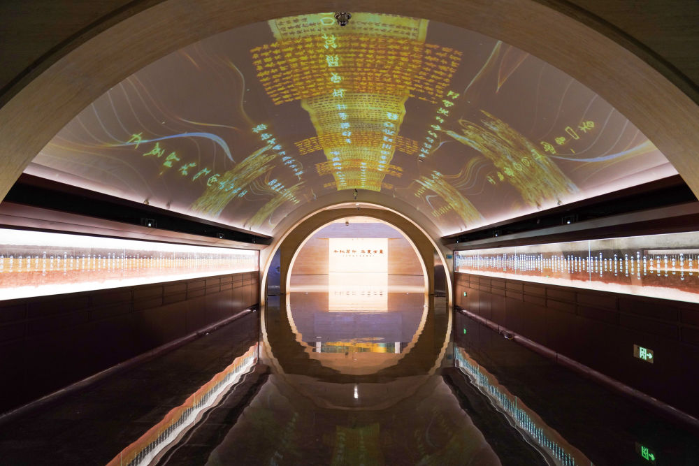 漫步其中,从诠释藏书文化的“文瀚八景”到国家书房内源于宋代天文石刻图的星空穹顶,从呈现中国历代书法绘画经典的文化长廊到洞库拱顶独具东方美学韵味的飞天壁画,富含中国文化元素的设计随处可见。