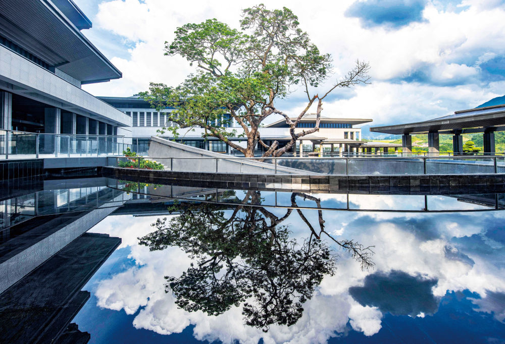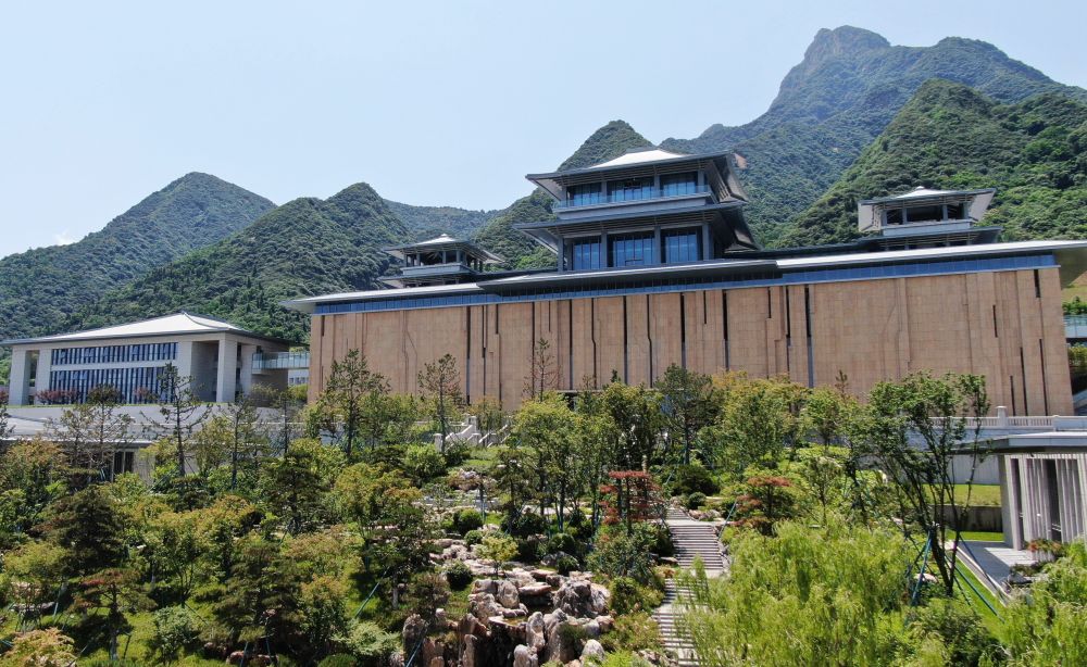 北京中轴线北延、燕山脚下,一片大气恢弘的建筑群掩映在青山茂林之中,彰显中华文化神韵。