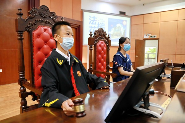 当天,同学们还上了一节庭前普法课、进行了民法典及禁毒日的知识问答,还穿上法袍当了一回小小法官。
