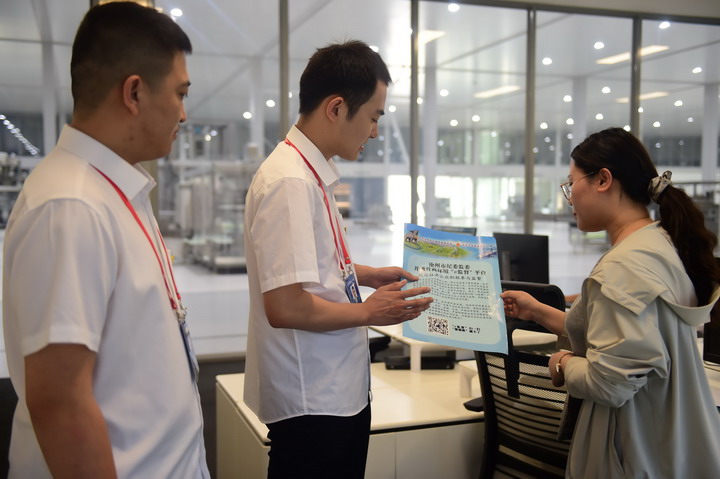6月8日,沧州市运河区纪委监委工作人员向企业管理人员介绍“e监督”平台使用方法。新华网发(谢辛 摄)